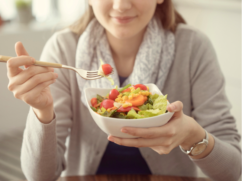 Второй этап обеда — порция дополнительной клетчатки (сложных углеводов). Приготовьте легкий овощной салат. Для рецепта понадобятся:
